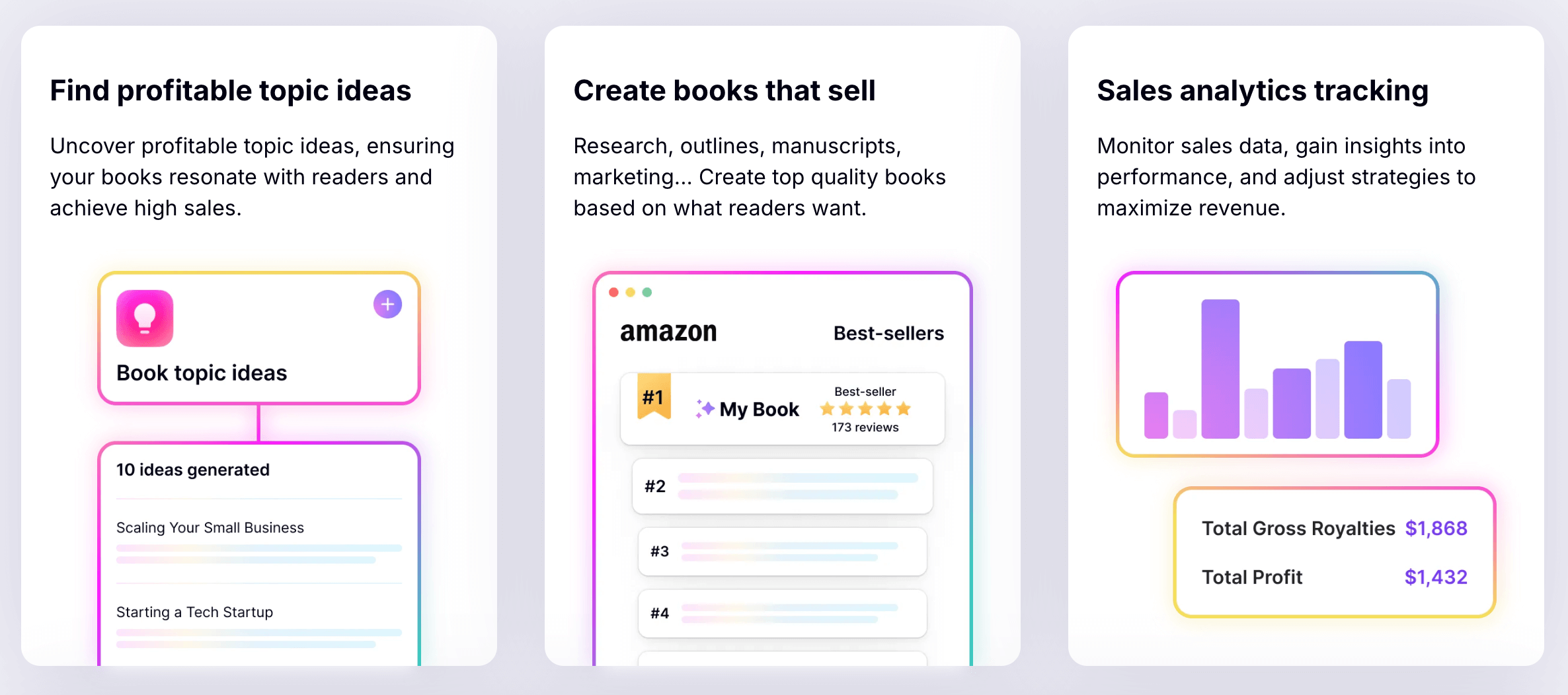 The tool also includes features for customer research, allowing authors to better understand their target audience. By analyzing customer reviews, search trends, and buying patterns, Publishing.ai provides actionable insights to inform content and different Kindle marketing strategies.