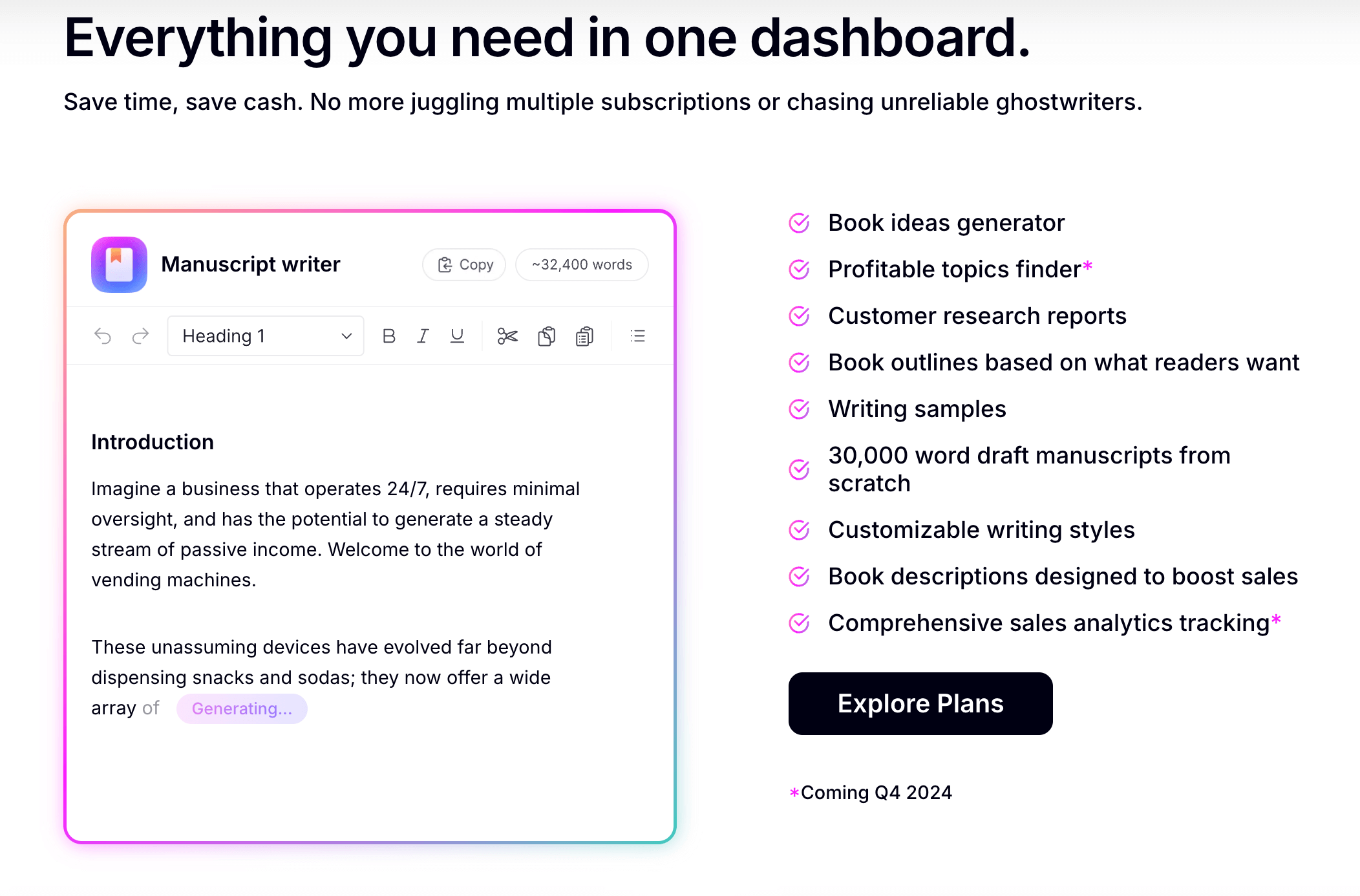 For serious authors ready to scale their publishing efforts, the Pro Plan unlocks the full potential of AI-powered tools.