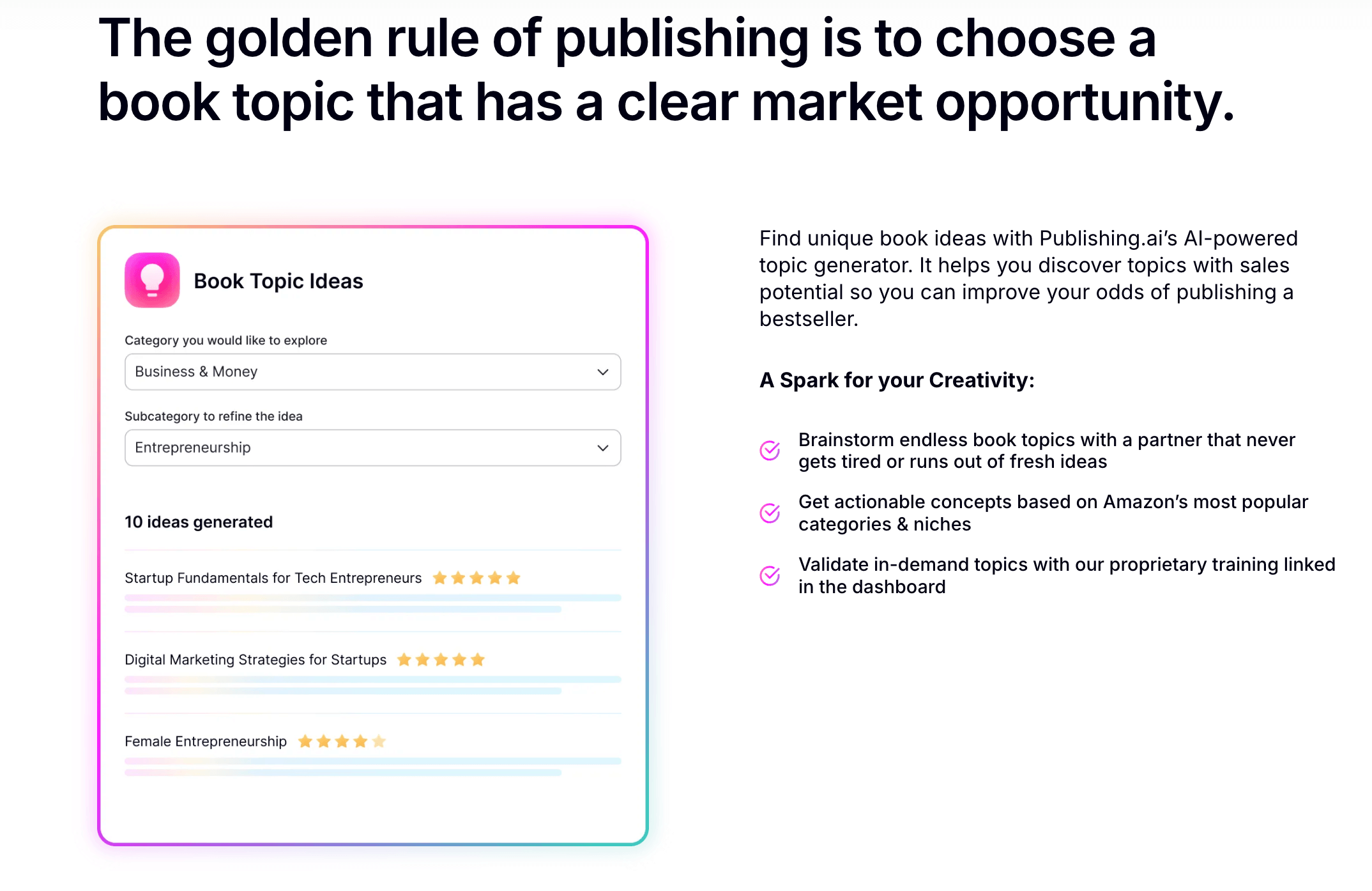 No matter your budget, Publishing AI provides flexible solutions for every step of your publishing career.