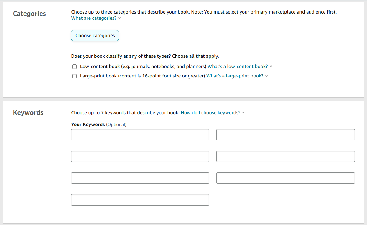 Note: Amazon WILL NOT allow you to choose your categories until you answer the explicit content question above it.